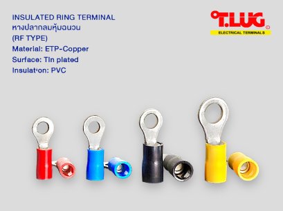 หางปลากลมทองแดงแบบกลมหุ้ม PVC (insulated Ring terminal ) RF type Low voltage หางปลาแรงดันต่ำ หางปลาผลิตจาก ทองแดงเกรด ETP-Copper Cu 99%รับรองมาตรฐานการผลิต ใช้ย้ำสายไฟ ขนาด เบอร์ 0.5 , 1 , 1.5 , 2.5 , 4 , 6