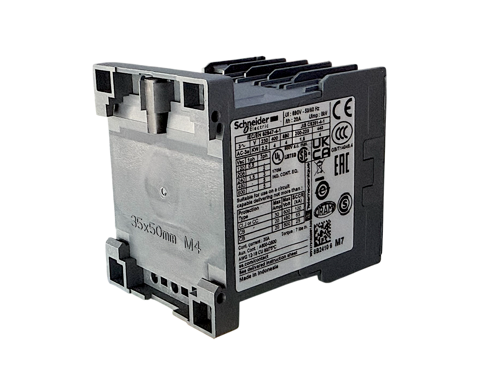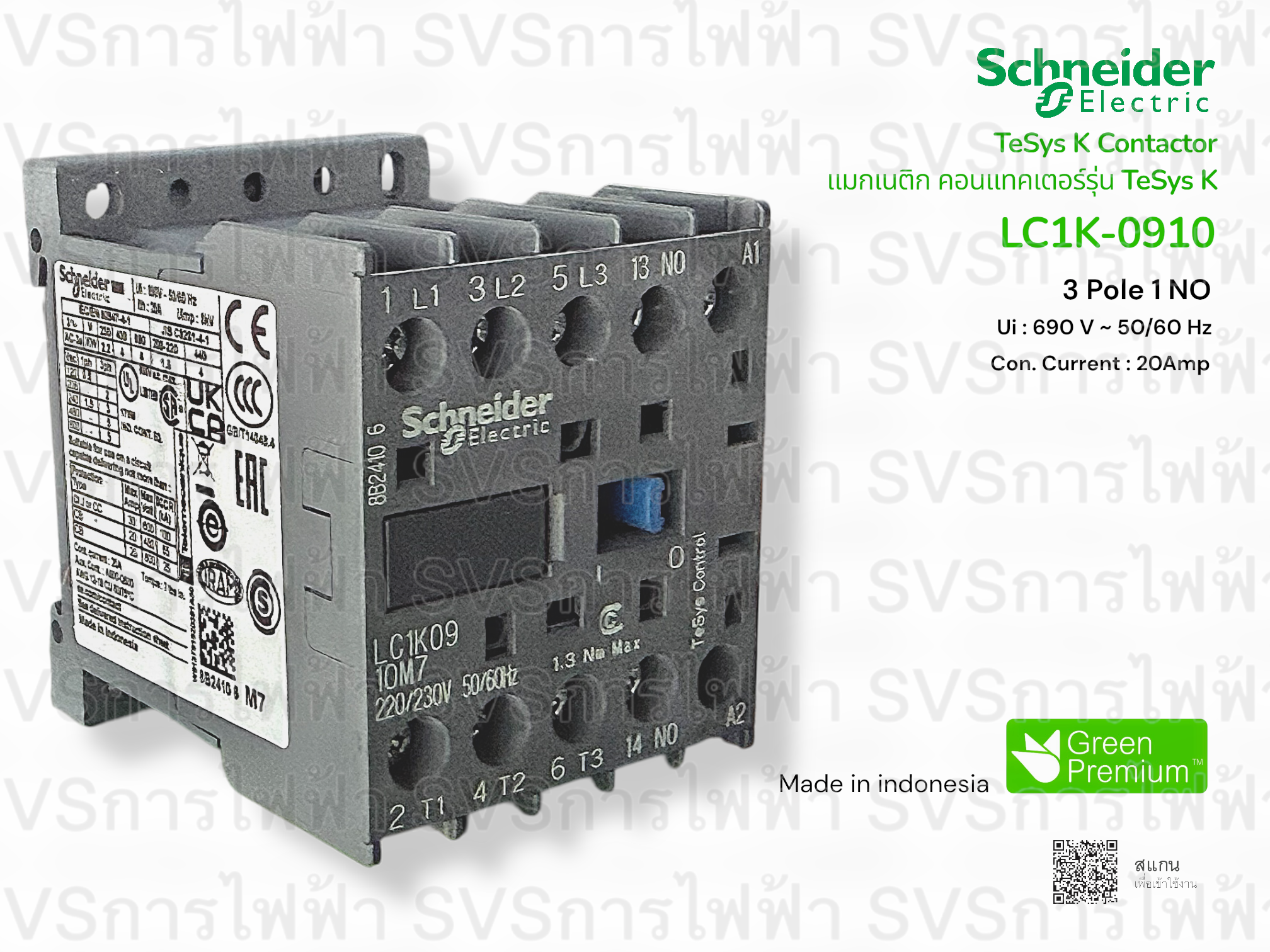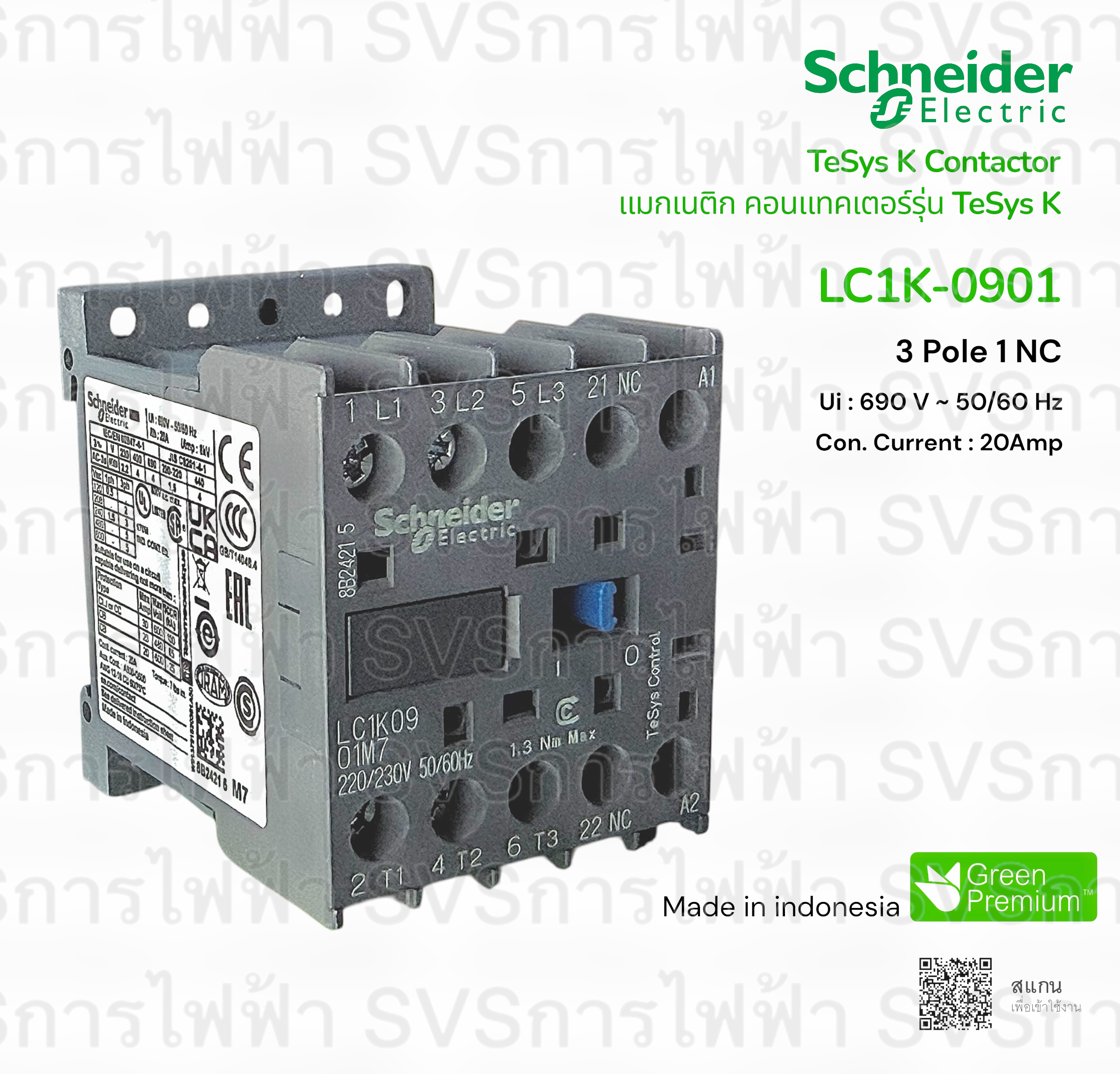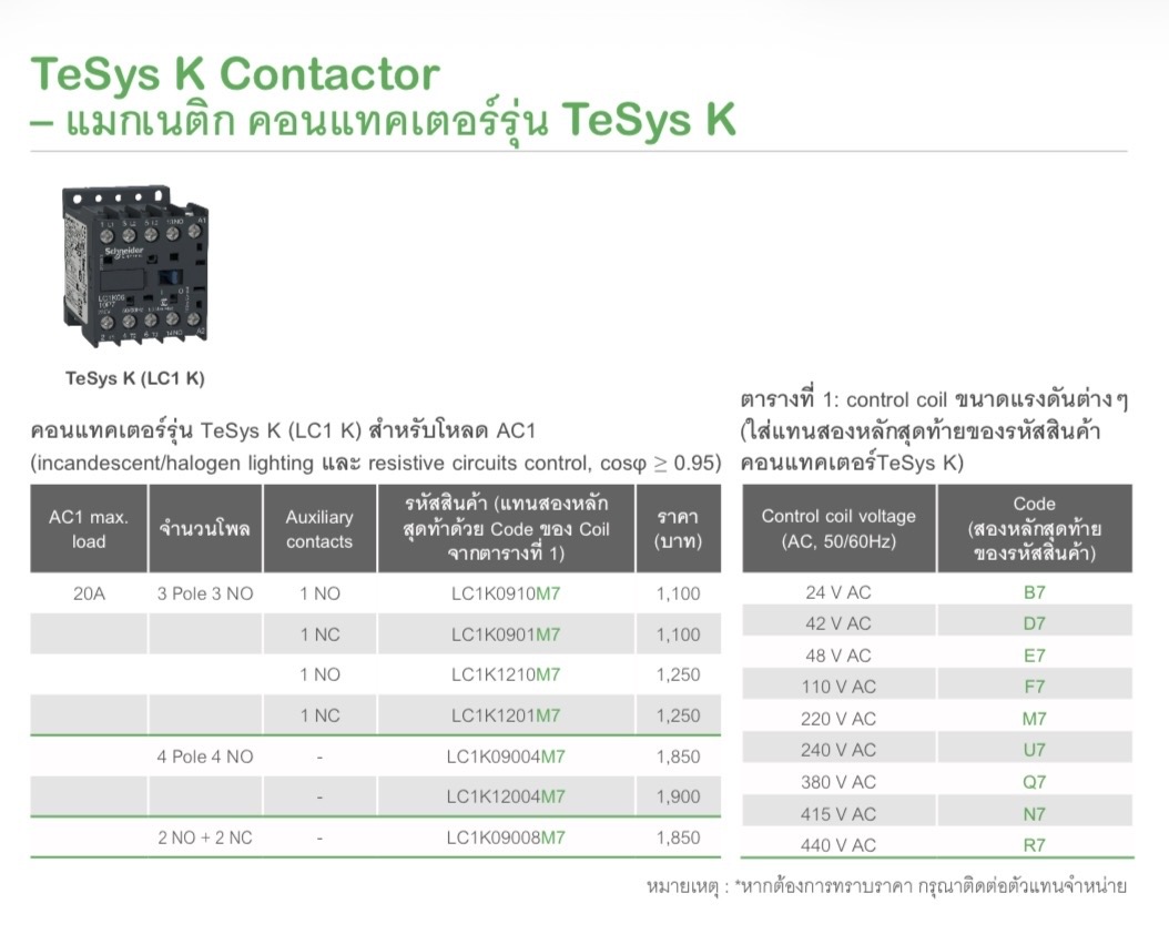 • คอนแทคเตอร์ 3 โพล 1 NO หรือ รุ่น 1NC ก็สามารถเลือกได้ รองรับกระแสไฟสูงสุด 20 แอมป์ ใช้ได้ทั้งไฟฟ้า 220V หรือ 690V ทำงานได้กับทั้งระบบไฟ 50Hz และ 60H