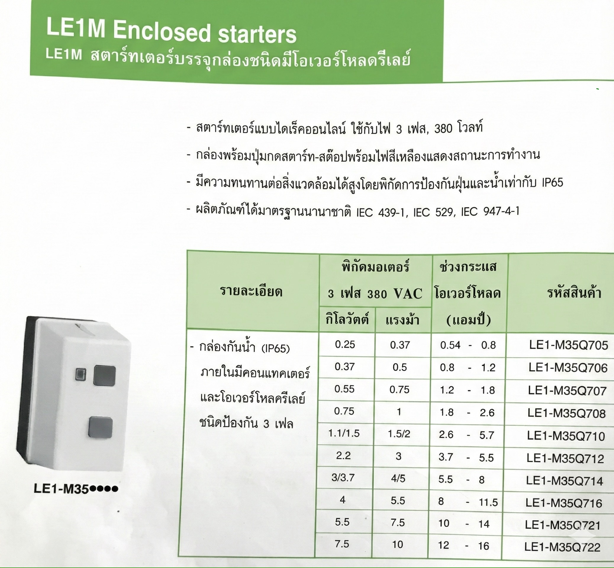 รุ่น: Schneider Electric LE1M Enclosed starters (รุ่นย่อยชุด LE1-M35Q7xx)