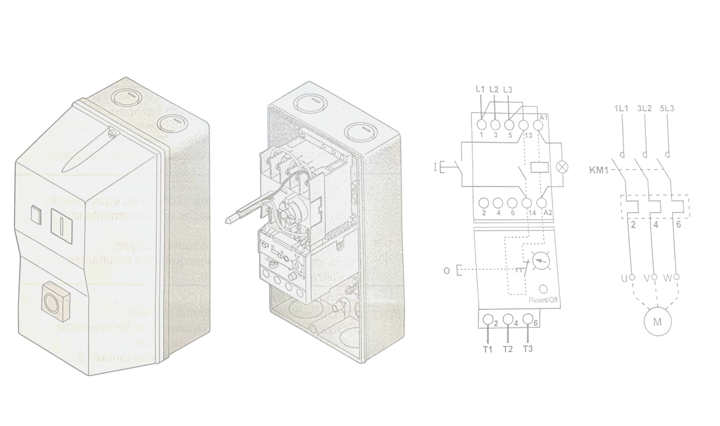 ภายในกล่องมี: คอนแทคเตอร์และรีเลย์โอเวอร์โหลดแบบ 3 เฟส (overload relay) พร้อมช่วงตั้งค่าแอมป์ที่เหมาะสมกับกำลังมอเตอร์แต่ละรุ่น