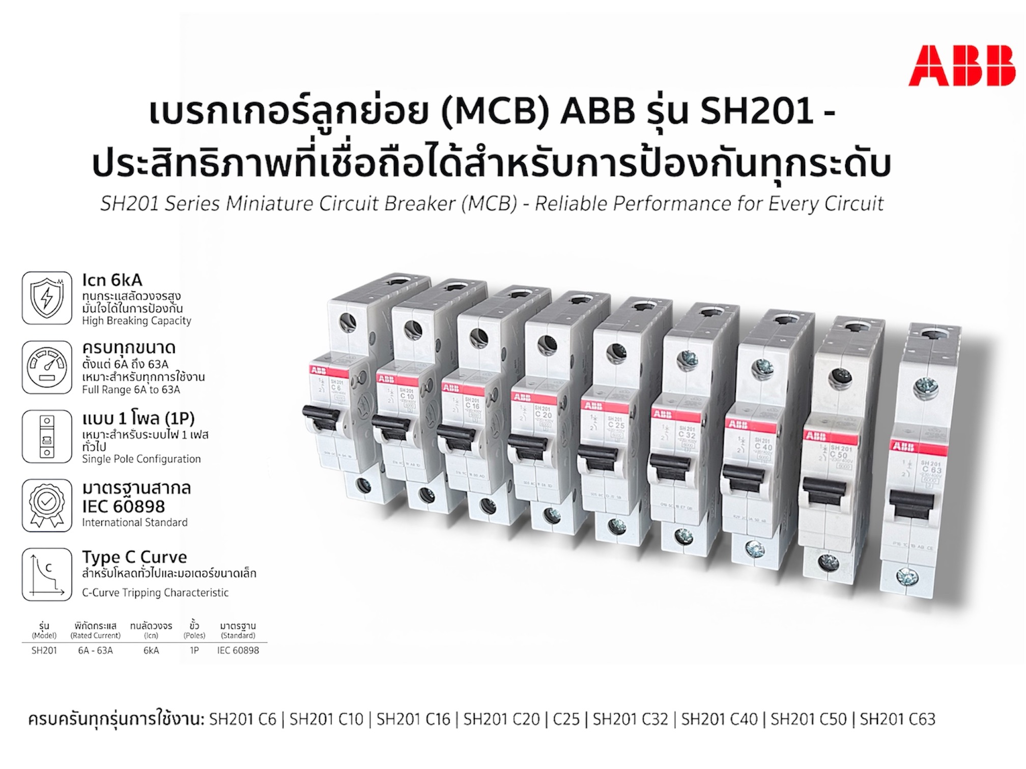 Miniature Circuit Breaker: MCB (เบรกเกอร์ลูกย่อย) ABB รุ่น SH201 Series
